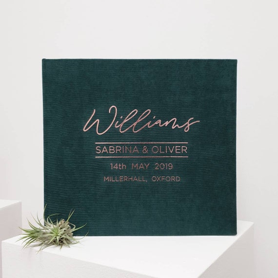 Green Wedding Guest Book Rose Gold Lettering Instax Picture Etsy Uk