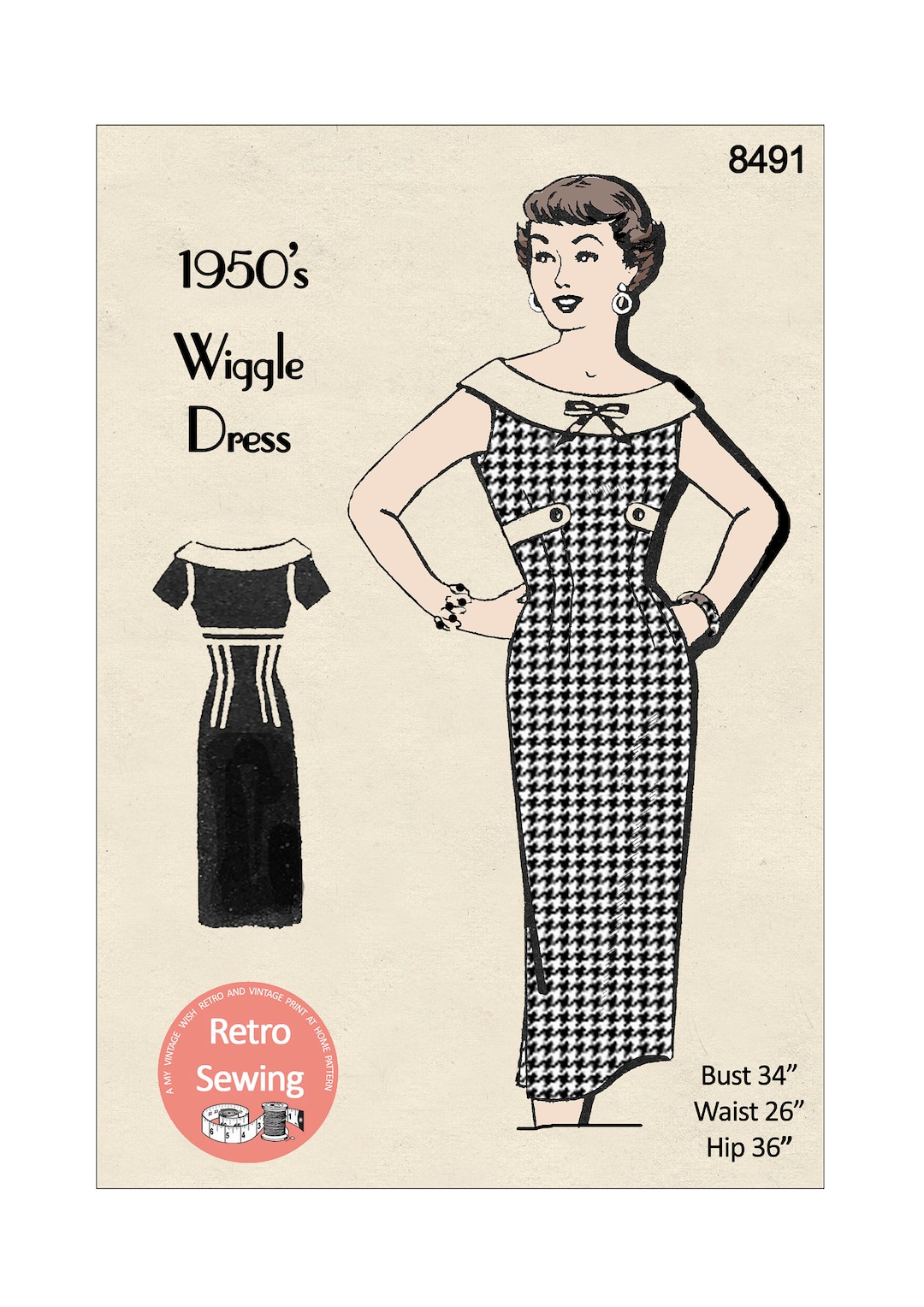 1950 S Wiggle Dress Pdf Print At Home Sewing Pattern Bust Etsy Uk