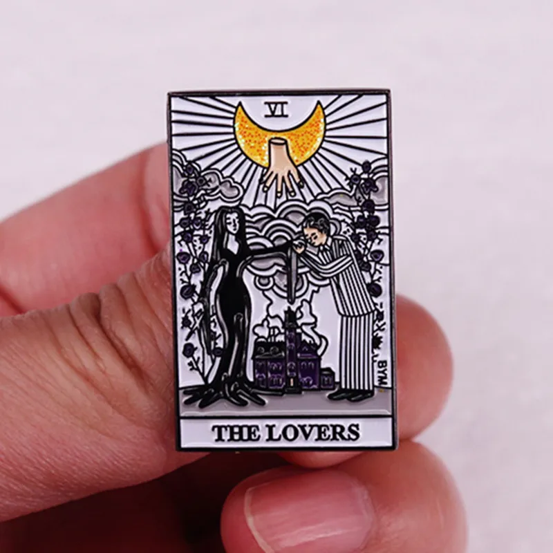 Addams Family Tarot Lovers Brooch Gomez Morticia Addams Pin Animated Movie Badge Tarot Lover Decorative Accessory Brooches Aliexpress